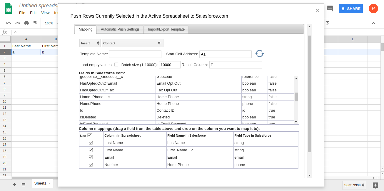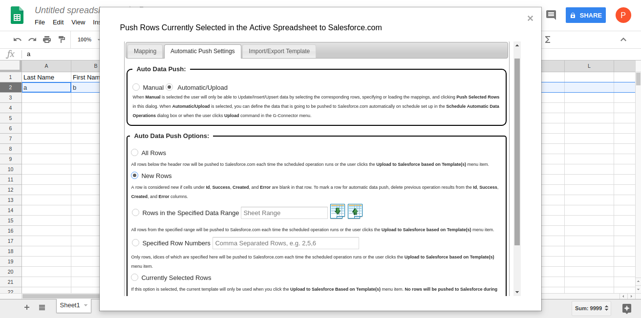 Pushing Google Sheet data into the Salesforce database through G-Connector - Part 3