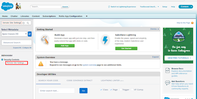 Firstly, search for Remote site setting in the Quick Find box.