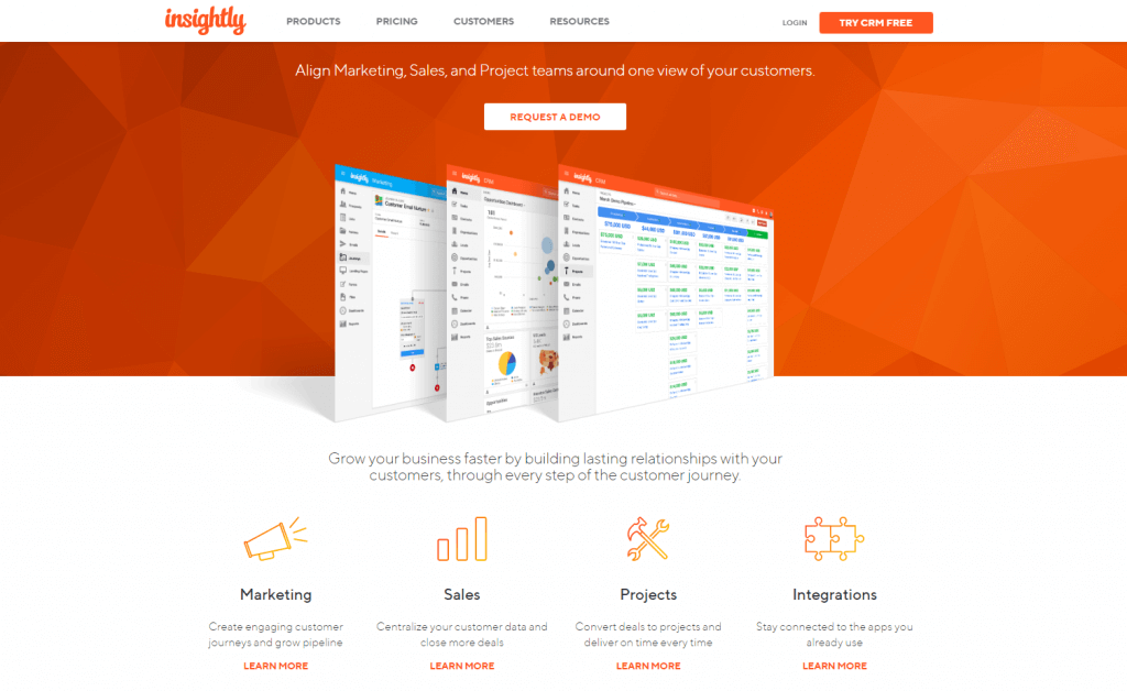 If you want an attractive yet high-powered CRM, Insightly may be right for you. This cloud-based platform is primarily targeted at mid-sized companies that want to combine marketing and sales functions. Inisghtly also offers project management, so you can see your customers through the entire buyer’s cycle.