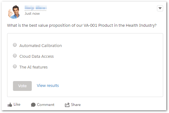 Advice from Colleagues How many times have you struggled to put together a value proposition for a customer? You may know all the features and benefits of the product you are promoting but creating value for the customer takes it to another level, requiring knowledge of their pain points and specific industry. A quick Chatter post or poll to your sales team can get you valuable insights on how to pitch your proposal.