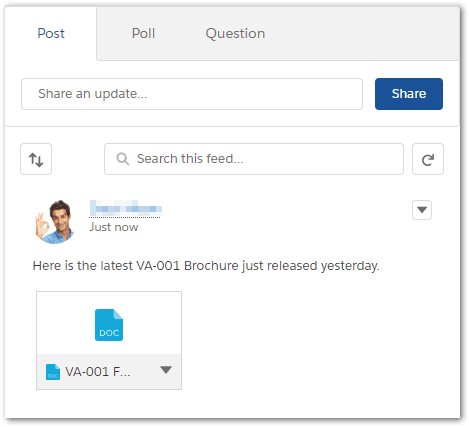 Get the Latest Sales Brochure Chatter enables you to post files to groups so you can easily access the latest product or marketing material in a safe, secure environment giving you the latest information at your fingertips whether you are in the office or on the road. Go one better and “follow” the group to automatically receive any updates to these files, ensuring you have the current version immediately.