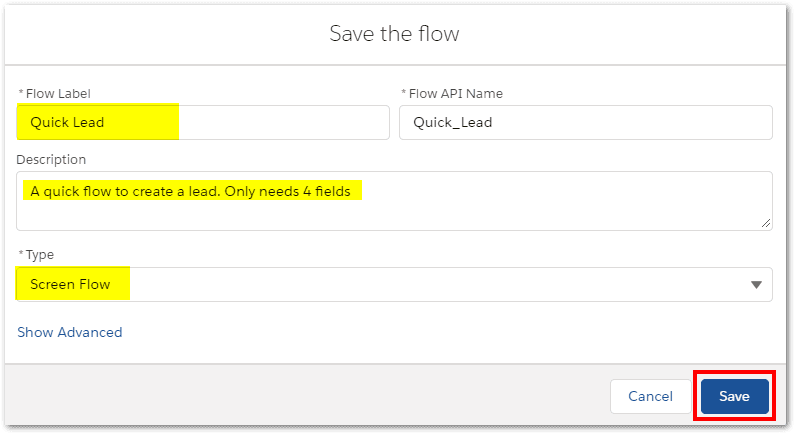 Finally, we can Save our new Quick Lead flow.