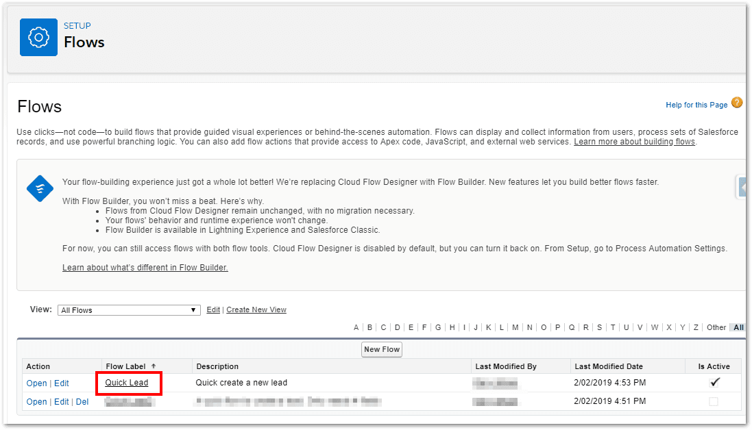 Previously, we used the Process Builder to make processes, we will now use the Flow Builder to create flows. Commonly just known as “flow”, the Flow Builder supports nearly all the same functions as Process Builder but with some additional functions.
