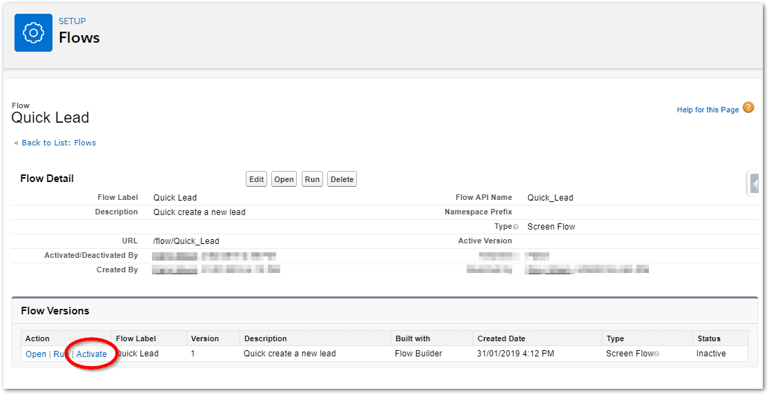 Note: You could have added this flow to a button on the Lead page instead.