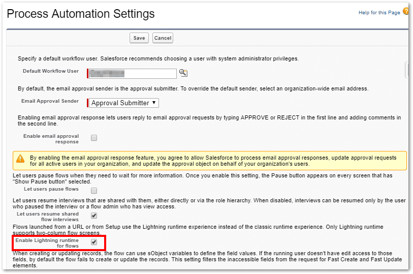 Select Enable Lightning runtime for flows.