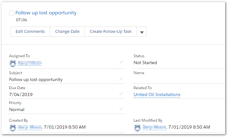 - Create a reminder Task for the Opportunity Owner