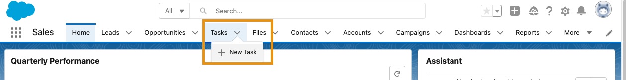 Create new tasks from the navigation bar