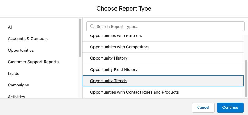 Clicking on the report tab generates the opportunity for seemingly limitless reporting types