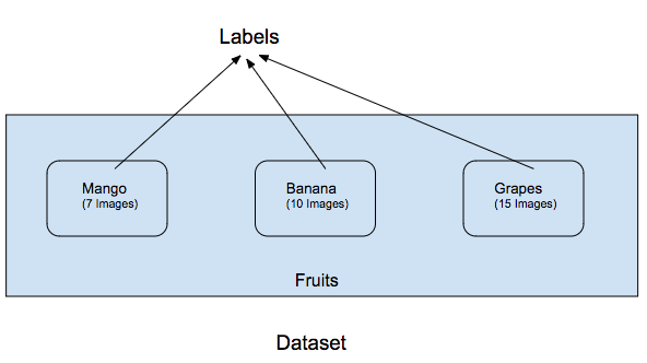 Here Fruit is the dataset and labels are the names of the fruits.