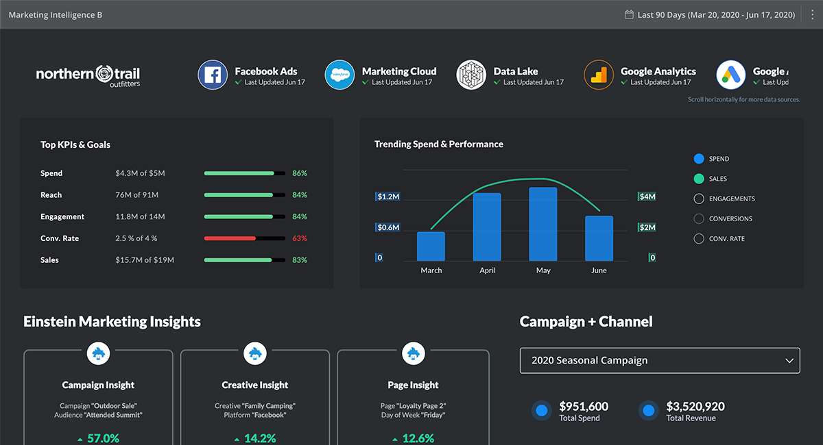 Einstein Marketing Insights automatically point out strategic tweaks for you to change course. You can as well customize analytics to your particular challenge with deep developer tools, including R and Python support.