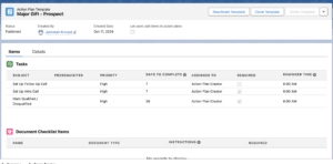 Action Plan. Fundraisers can create action plan templates to assign the same set of tasks to different donors who share similar criteria, like donors who have given over 100k in the past three years. These standardized lists of tasks will ensure your philanthropy team follows the same processes to maximize gift conversion and donor retention.