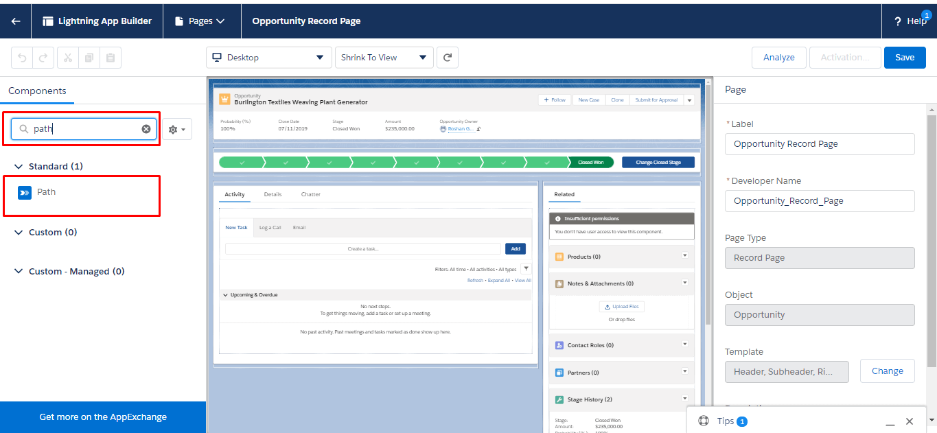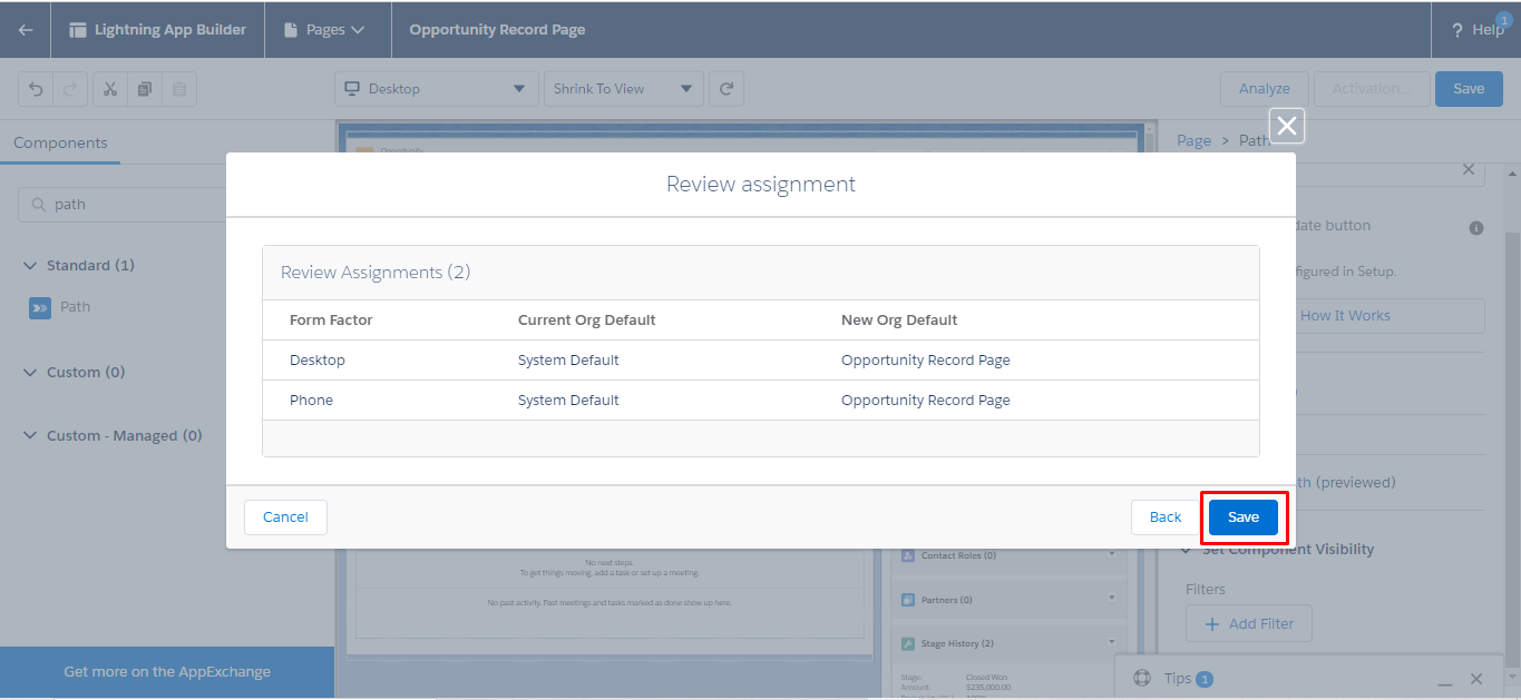 Steps to add path on the Opportunity record page.