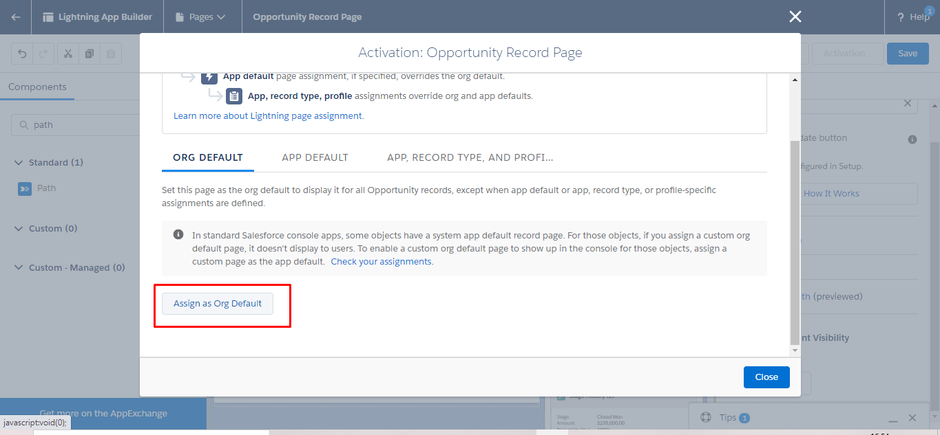 - Select Assign as Org Default.