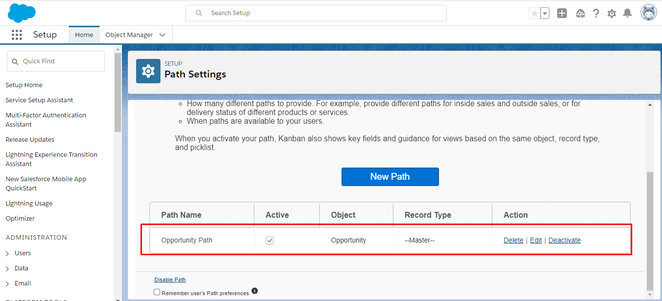 - Go to Setup, Search for “Path Settings” and “Select Enable”