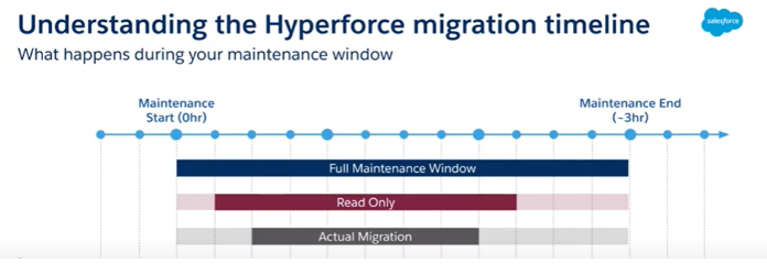 The migration method is concerning three hrs. and also the org is accessible in mere read-only-mode half-hour before migration.