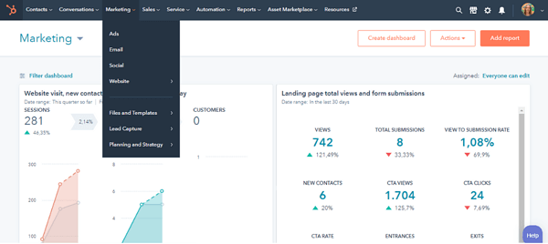 HubSpot is an all-in-one marketing automation software that helps to automate marketing tasks just beyond email. Like Salesforce Pardot, HubSpot includes email marketing tools, CMS, social media management, and sales tools that act as a touchpoint between your contacts and your organization.