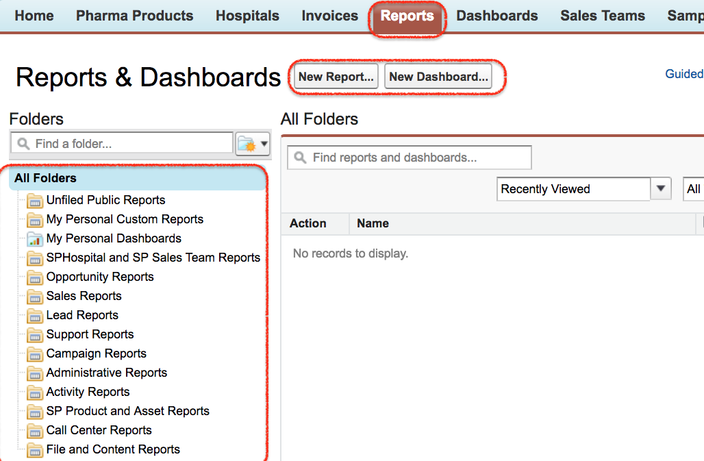 Reports and dashboards in Salesforce are organized into folders. For reports and dashboards, we may also build new custom folders.