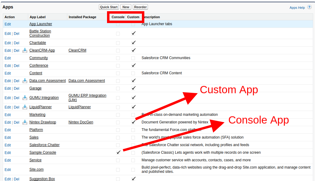 I have a list of applications in Salesforce org, in that list of applications how to find which applications are custom applications, which are console applications?
