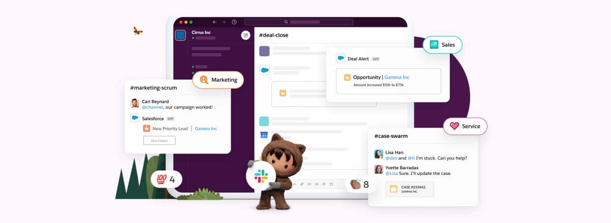 Looking at the growing need for collaborative tools, Salesforce acquired Slack in 2020, encouraging remote work and hybrid workplaces. It introduced Slack Connect – an integrative collaboration system to allow users to collaborate and communicate about the business process from one centralized platform. The platform allows internal departments and external users to simultaneously collaborate on specific activities and topics. It speeds up the daily tasks by splitting the total workload and cutting off the manual communication. So, if you’re thinking about integrating a collaboration tool with your Salesforce customer portal, SlackConnect is the answer. It will let you work securely with your customers, partners, vendors, suppliers and build strong relationships with them.