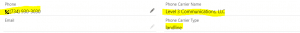 1. Scenario no. 1 – Whenever a user adds/edits the Phone number field with a valid number, Twilio populates the carrier type & carrier name (if Twilio has a record of it).