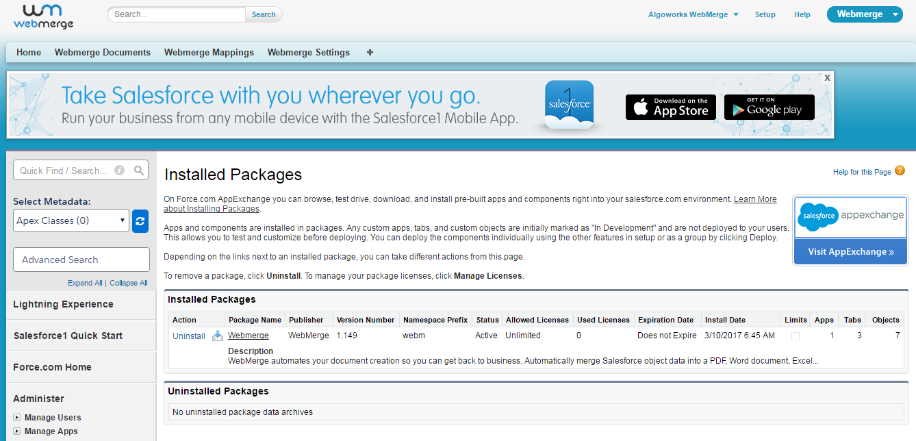 Step 1: Install WebMerge package from AppExchange