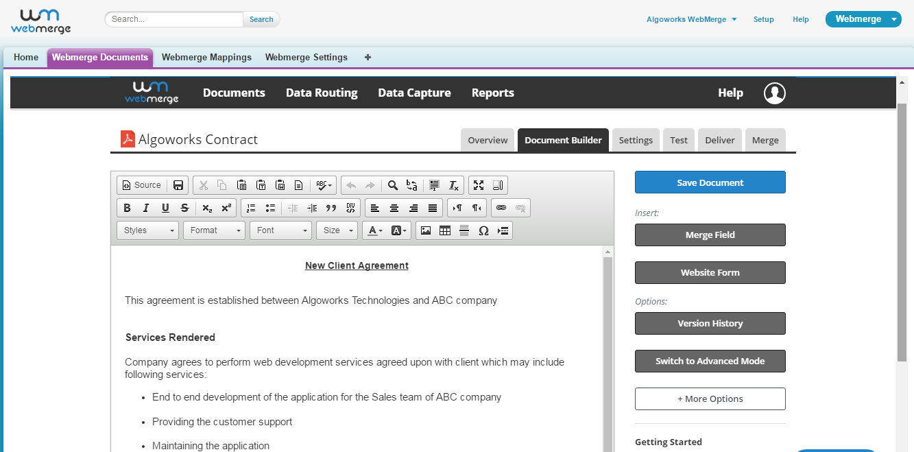 Step 2: Create and setup your documents in WebMerge by clicking on the tab “WebMerge Documents”