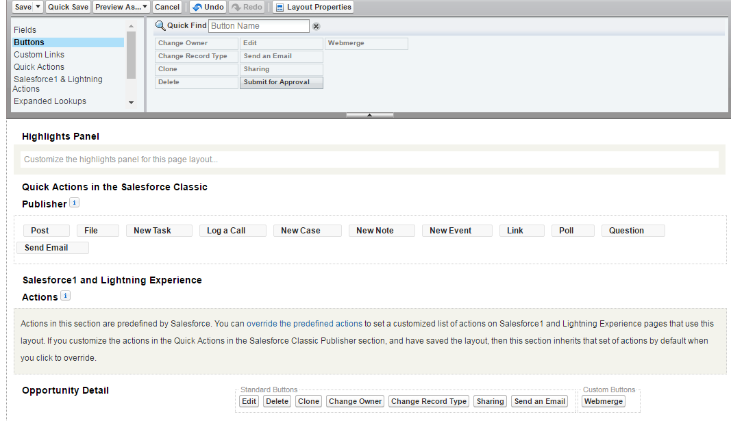 Step 5: Navigate to “Opportunities” tab and create a record and edit the page layout of the opportunity detail page in order to include “WebMerge” button in the button section of the layout