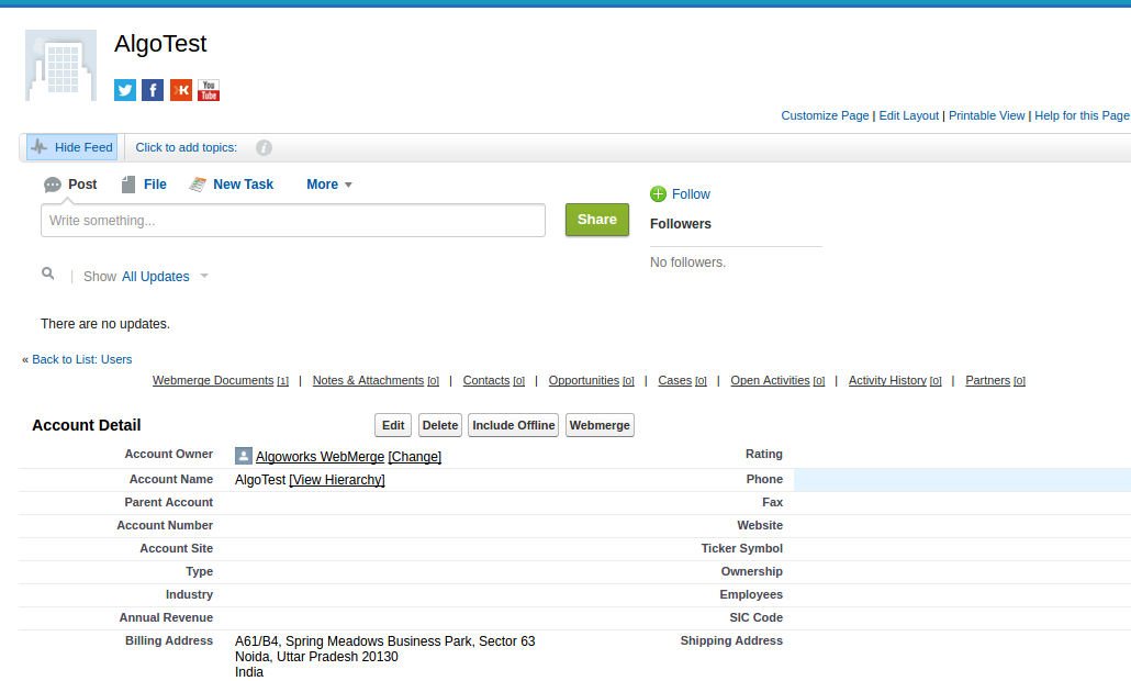 - If you have not checked the “automate generate the document” checkbox, then open the account’s record page.