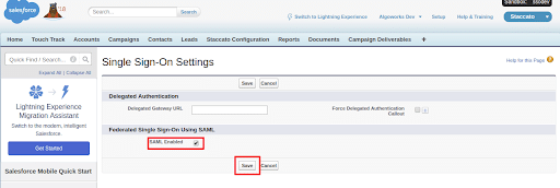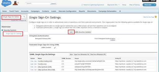 • Now go to your salesforce org and type Single Sign-On Settings in quick find/search box and click the link - Single Sign-On Settings.