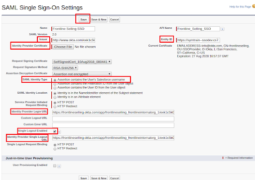 • Check Single Logout Enabled checkbox and put the URL where you want to redirect after logging out from salesforce. Here we are using  Identity Provider Single Sign-On URL as it will redirect to Okta Sign In page from where we can again log in to salesforce after providing the Okta credentials.