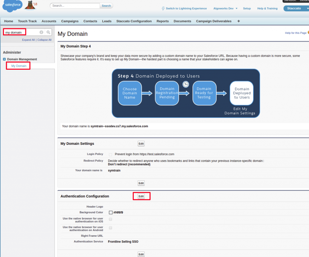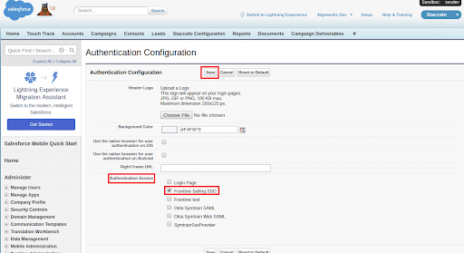 • Click Edit in the Authentication Configuration section and select only that SAML configuration you have just created.
