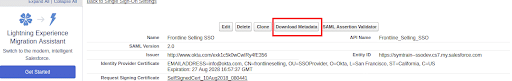 • Now for the Signature Certificate field you have to manually create certificate, go to SAML Configuration setting record and click Download Metadata button, this will download a XML file.