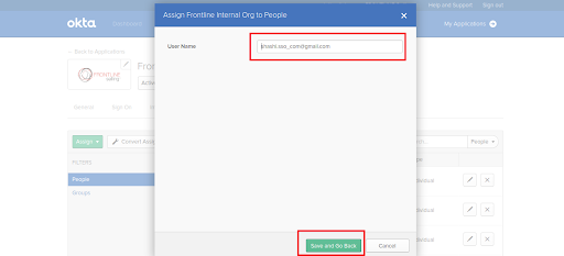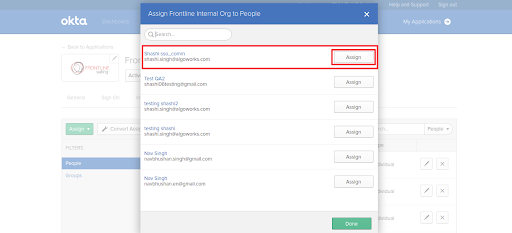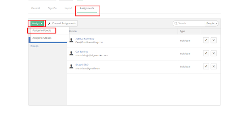 • Click on Assign button and then click Assign to People, this will open a pop up which have all okta users in it.