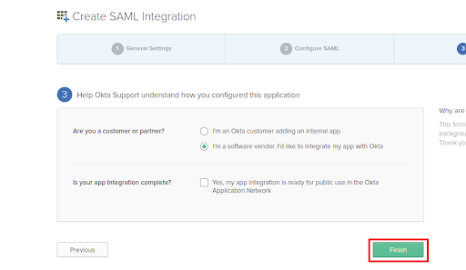 • This page is for Help Okta support to understand how you configured this application, fill this and click Finish.