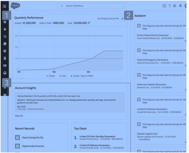 The following features are offered by Salesforce Lightning Interface: