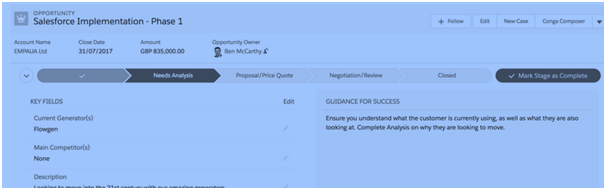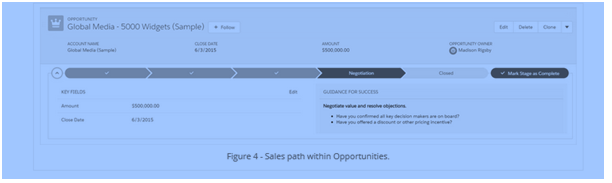The sales reps can easily qualify any lead with the help of this feature. The Sales Path is attached with the opportunities, which helps the reps to focus on the required data for the current stage of any lead and they can follow the standard process. The reps can move the stages of opportunities whenever they feel the need. Due to this feature of Lightning, the reps need not be worried about feeding information and they can just focus on the fields, which matter most to them.