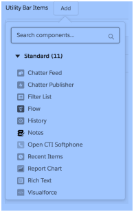 Salesforce Lightning has a utility bar at the bottom. The bar can be customized and the custom and standard objects can be added to this bar. The bar has all the required components by default like Notes, History, Rich Text, Chatter feed, Visualforce etc. Here Filter List gives access to a pre-determined view of thelist and the recent items. In CTI software the screen pop also appears here.