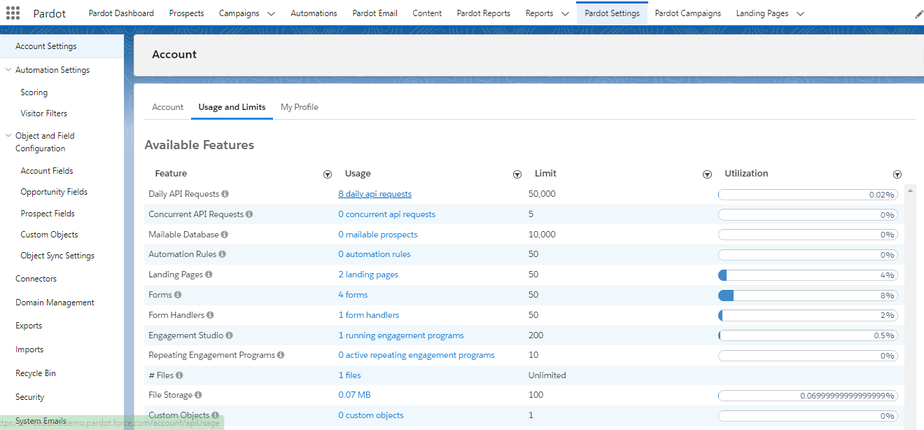 - Pardot Limits and Usage: