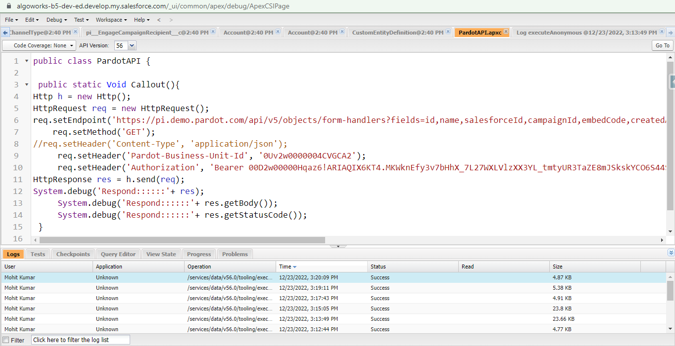 - Now Callout a Pardot by using Apex Code: