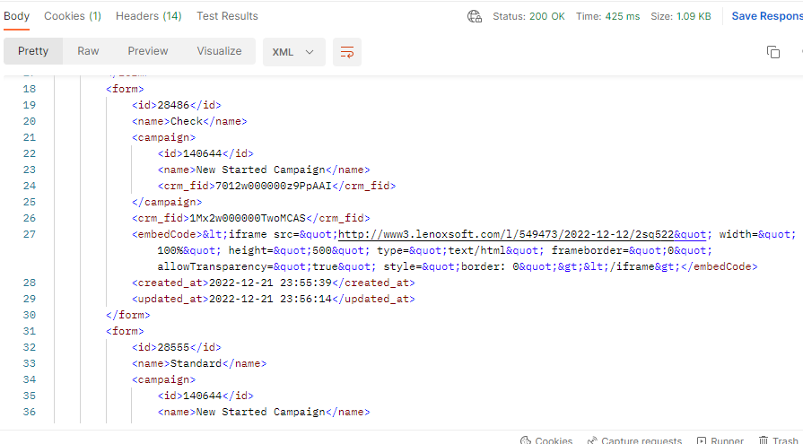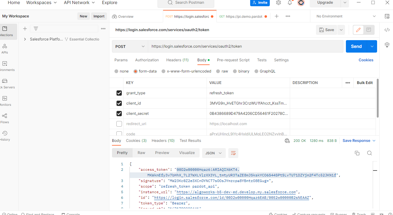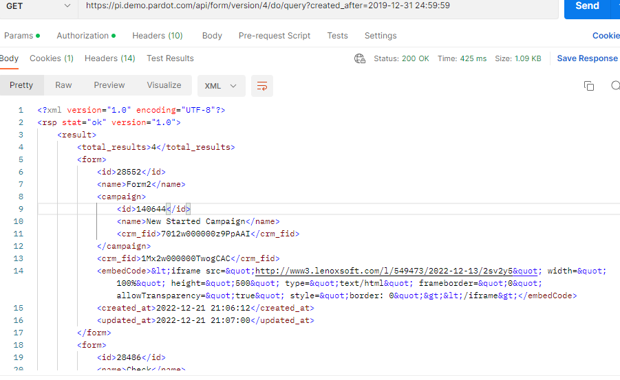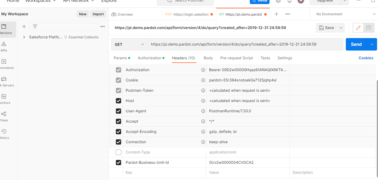 - Response in Postman from Pardot: