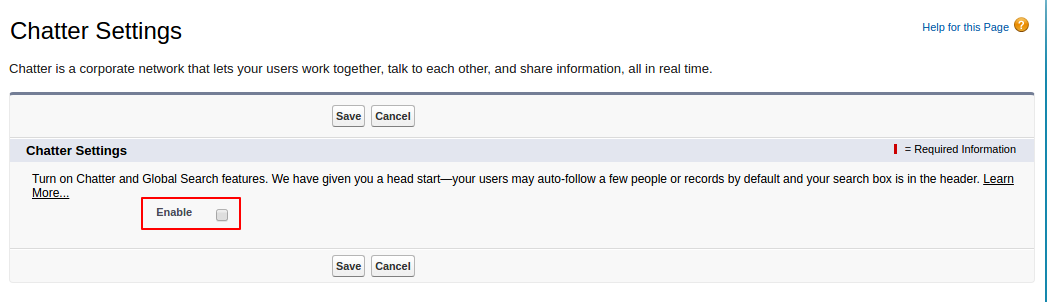Step3: Click on checkbox to Enable Chatter, and the customize the setting according to your requirement.