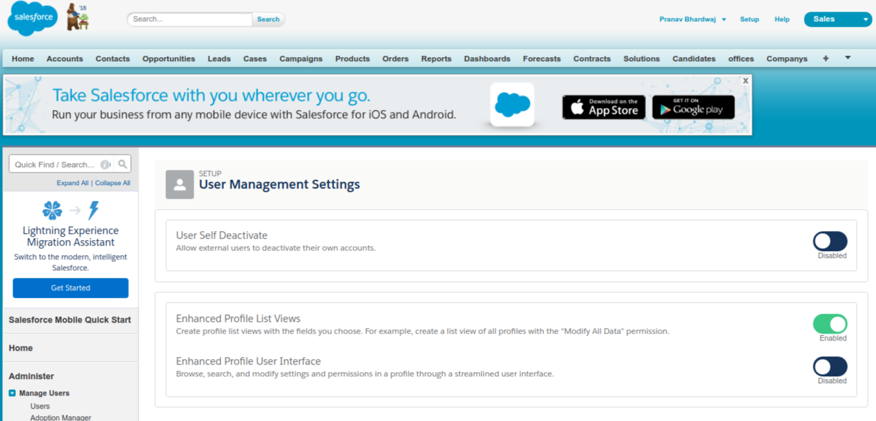 And Enhanced Profile List View gives you the ability to quickly view, customise, and edit list data to speed up your daily productivity whereas in normal view you can have all the profiles on a single page. In Enhanced Profile List View you can create profile list views with the fields you choose. For example, create a list view of all profiles with the "Modify All Data" permission.