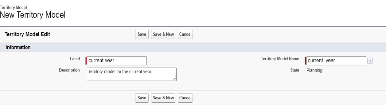 5. Enter the Territory model for the current year in the description field.