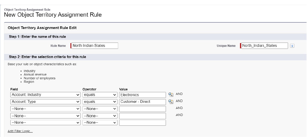 Now, Let’s apply an Assignment Rule to a Territory:-