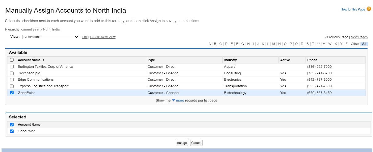 Let’s assign an Account to a Territory Manually:-