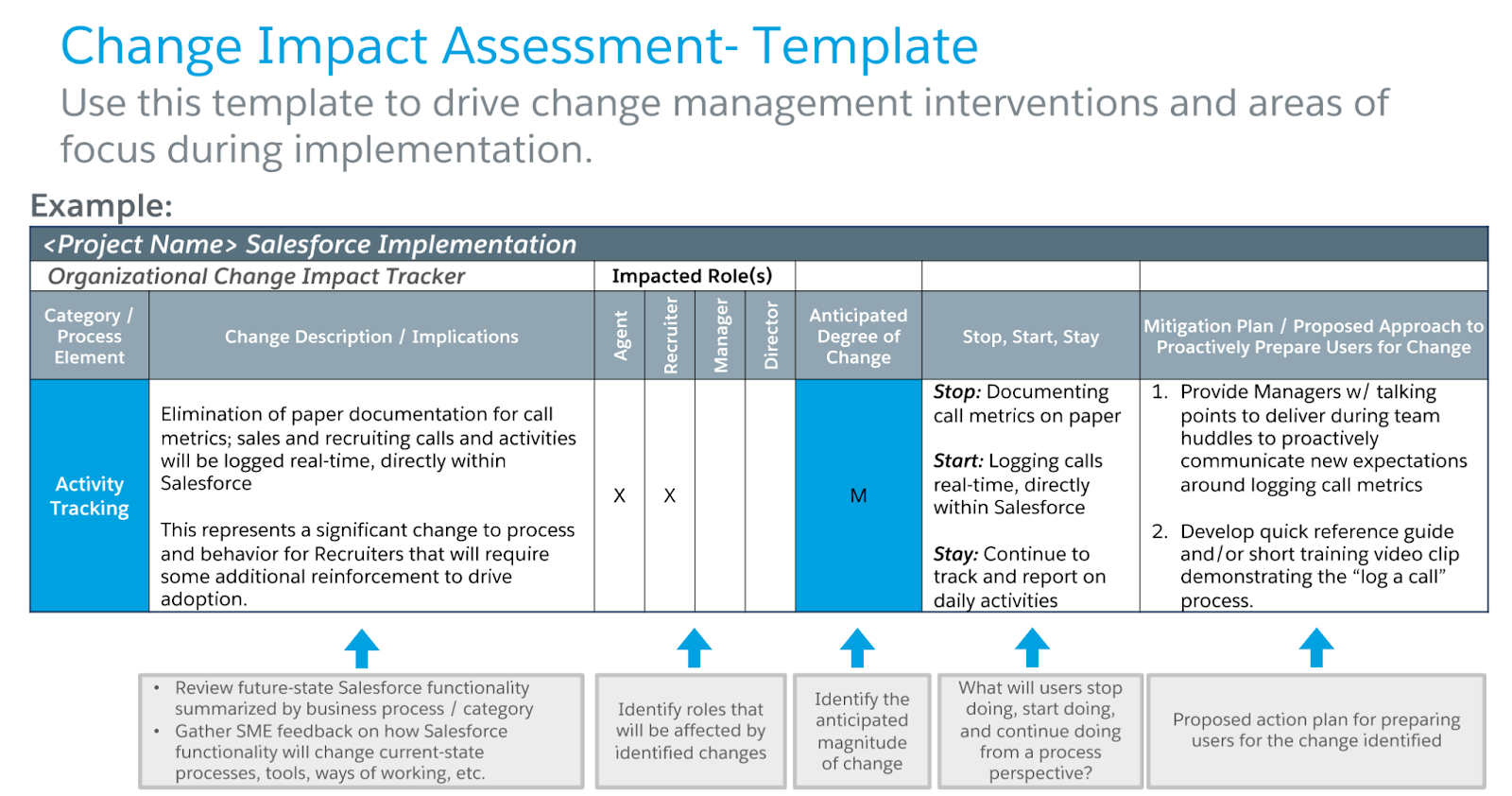 Impact Assessment template from Salesforce could be used to understand the impact of a change from an end user’s perspective and proceed further.