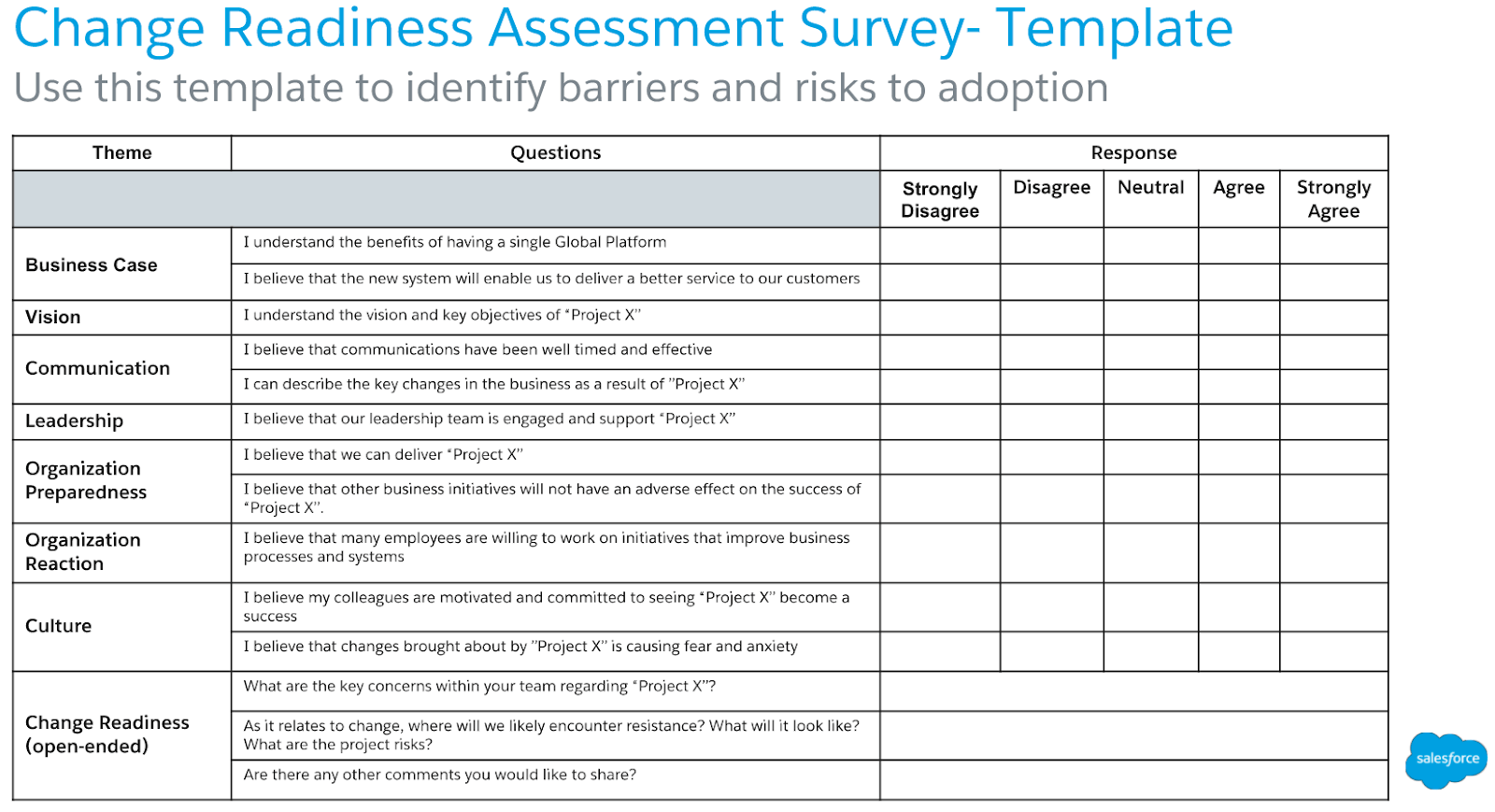 There are 9 steps for effectively handling changes as per the Salesforce report. Also, we have included links to useful templates that can be used by your team in this process.