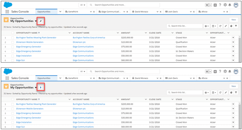 Do you have a preferred view that you want to make as a default list? This is now possible with the Pinned Lists feature in Salesforce Spring ’19 release that allows you to make a customized list of your new default. Click the Pin icon to pin an unpinned list and select the list view to pin a different list.