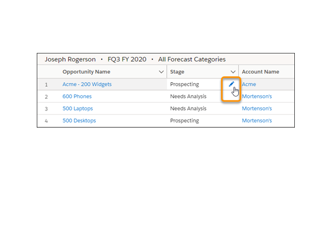 This Winter ’21 feature for Sales allows the forecast users to update stages within the opportunity list without leaving any effect on the forecasts page. Previously, the inline editing was only available for fields other than Stage.