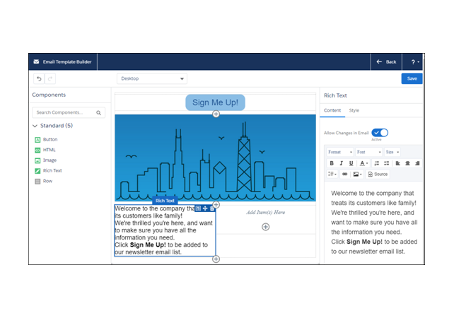 Your reps can now create email templates faster with visual tools within the Email Template Builder. This eliminates the need to add HTML code. The users can simply drag elements to develop effective email templates.